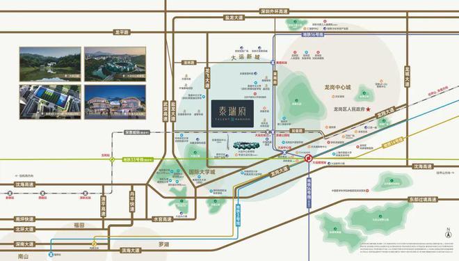 地铁:紧邻地铁16号线站大运枢纽。未来地铁深惠城际(建设中)在此交汇,4站深圳北枢纽、5站西丽、8站前海;