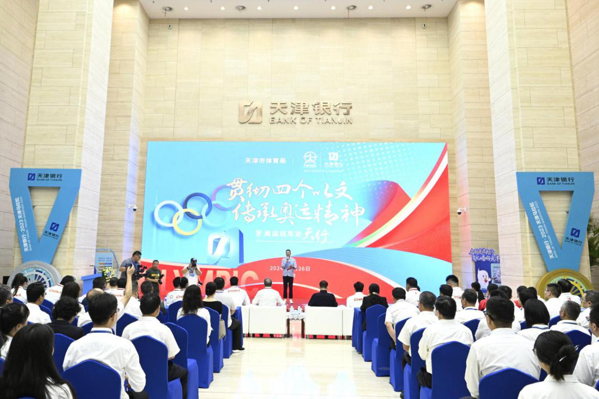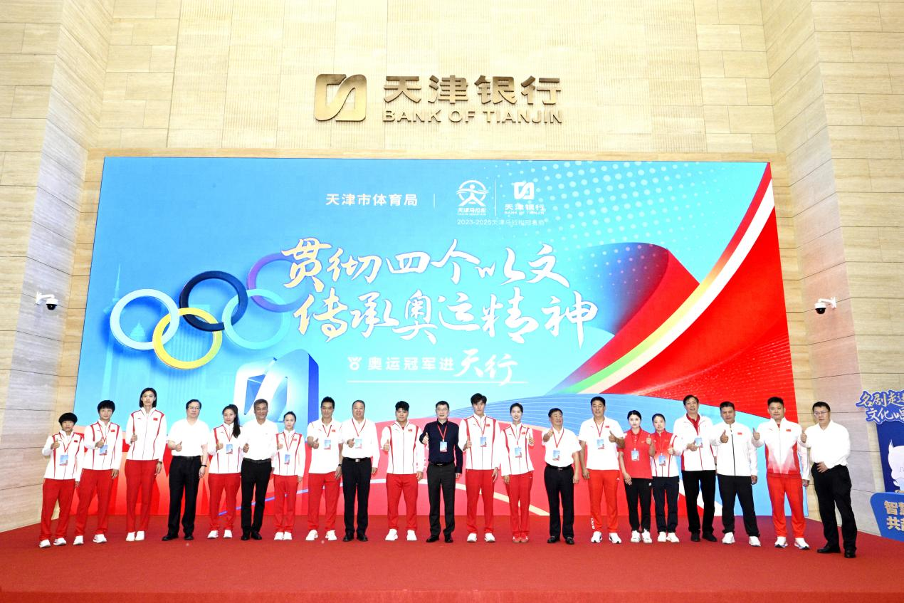 天津银行党委副书记、行长吴洪涛在致辞中表示,天津银行积极践行“以文化人、以文惠民、以文润城、以文兴业”重要要求,通过打造“文化金融”和“运动金融”服务体系,完善“金融+文化”“金融+体育”生态圈建设,积极助力天津文化产业和本地运动品牌长足发展,不仅冠名支持“天津戏剧节”和“天津马拉松”、在5A级景区“天津古文化街旅游区”打造“支付便利提升示范街区”、支持“老字号”资源盘活,还积极承办“让金融家看得更远”金融市场交流会,携手金融同业,整合优质资源,共同推动金融服务实体经济发展。未来,天津银行将继续发挥自身金融“活水”优势,支持文化体育事业发展,同时也希望通过此次活动,推动奥运精神在天津银行播下种子、生根发芽、茁壮成长,不断激励天行员工展现奋勇争先的意志、自我超越的勇气和敢打必胜的作风。