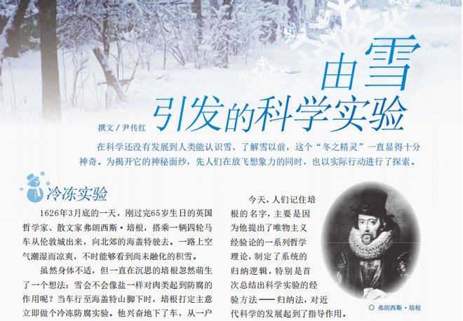 实用类文本阅读三则材料中,其中一则选自中国科普作家尹传红发表在《知识就是力量》2016年1月刊“特别策划”栏目中的文章《由雪引发的科学实验》;