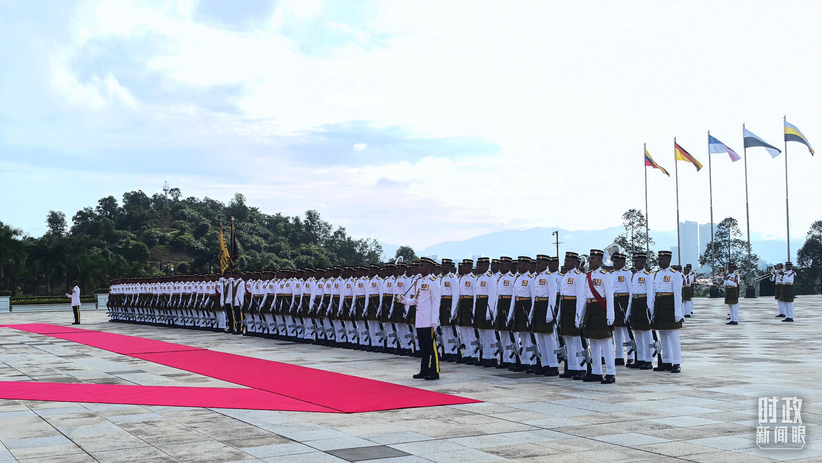 16日,马来西亚最高元首易卜拉欣在国家王宫广场为习主席举行隆重欢迎仪式,随后两国元首举行会见。安瓦尔总理全程陪同。