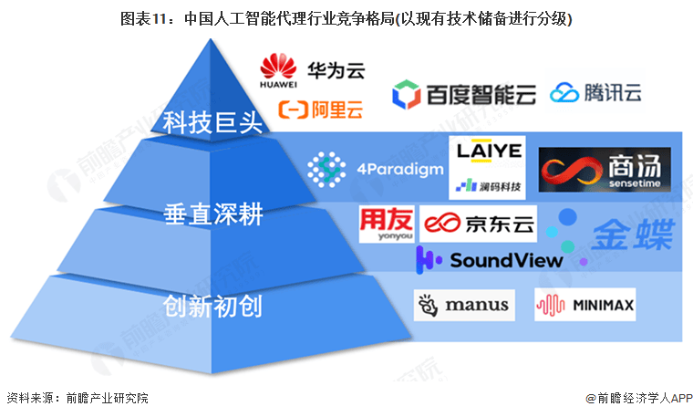 中国人工智能代理行业竞争格局呈现“头部集中、生态分化、场景深耕”三大特征。以阿里巴巴、深度求索、字节跳动、腾讯、阶跃星辰、智谱AI为代表的“六小虎”凭借技术、数据和资本优势占据大模型层主导地位,推动行业从“百模大战”向头部集中演变。应用层呈现“BAT三路径分化”:百度构建AI基础设施,腾讯聚焦生态协同,阿里驱动业务重构(通义大模型+钉钉智能化),分别对应操作系统、调度中枢和引擎升级三种战略逻辑。垂直领域则涌现出赛意信息、特斯联等企业,通过“行业智能体工厂”或城市级AIoT解决方案实现差异化竞争。硬件端,华为昇腾芯片和寒武纪加速国产替代,但算力仍受制于国际封锁,倒逼国产化进程。整体来看,技术壁垒、场景渗透和生态整合正成为竞争关键,未来行业将加速从技术竞赛向商业化落地能力迁移。