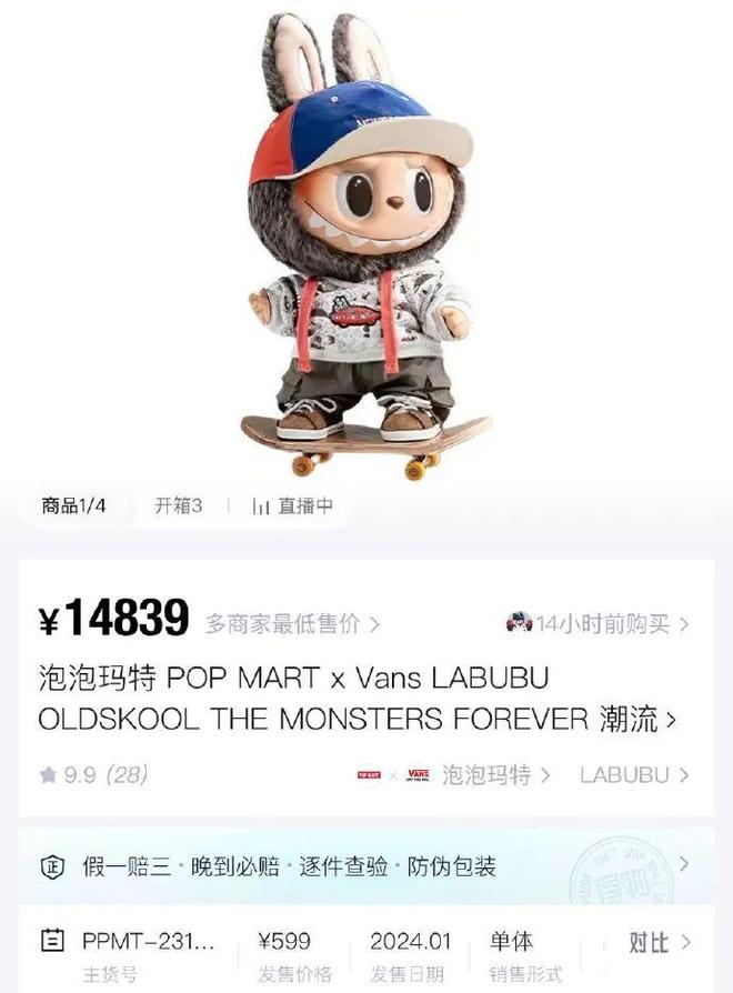 之前LABUBU与Vans的联名款潮玩也被炒上了“天价”,发售价仅为599元,如今在二手市场上已涨价到14839元。