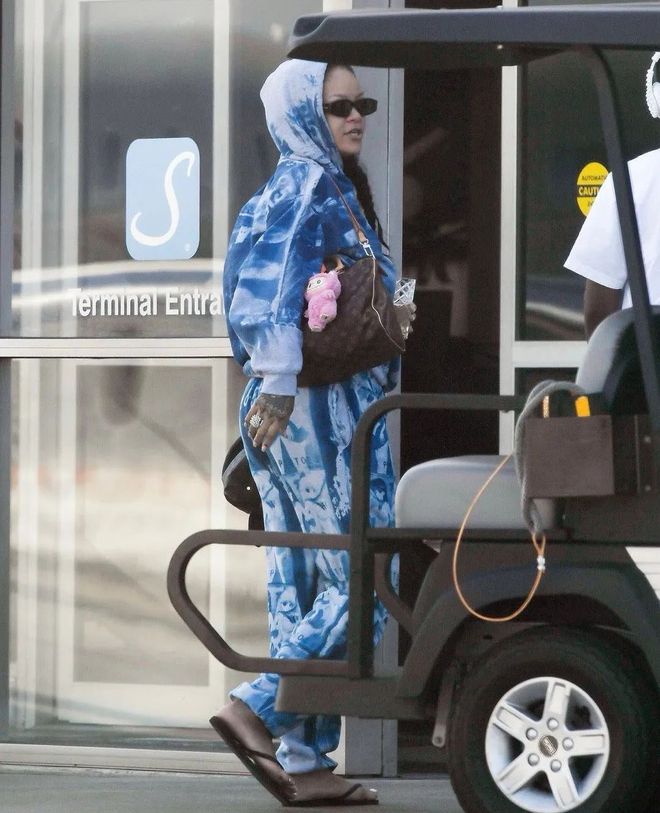 Rihanna之前走机场的这套街拍图,最显眼的还是LABUBU。LV的包在LABUBU的搭配下,时髦又吸睛。
