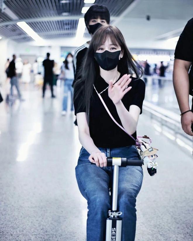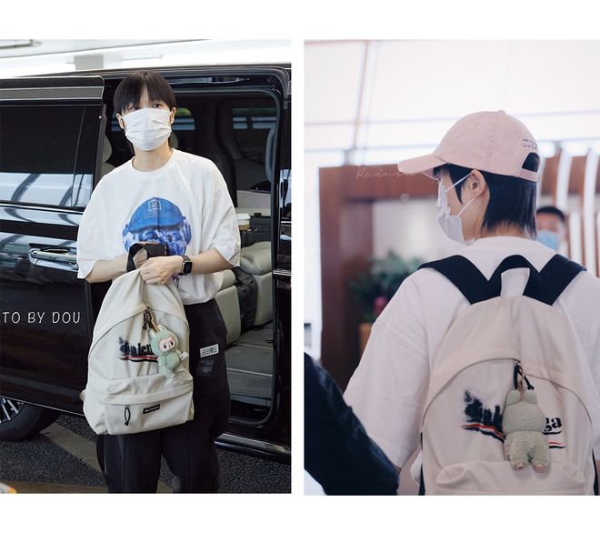 李宇春前几天走机场包上也挂上了LABUBU,藏青色的LABUBU挂件低调点缀帆布双肩包,凸显潮流个性。