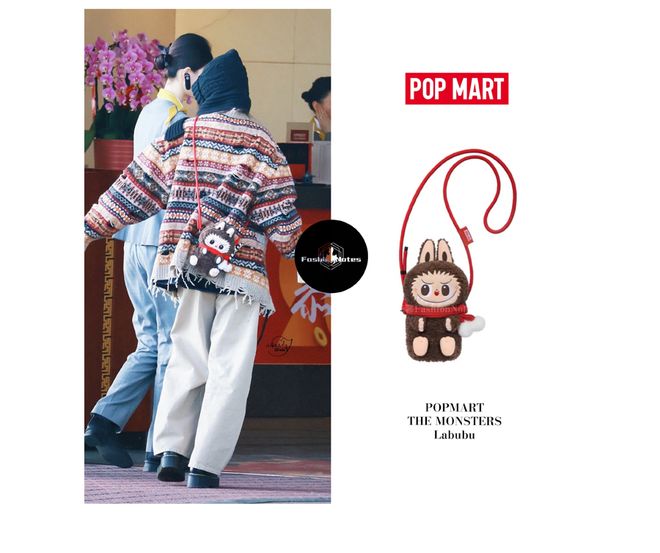 杨幂的LABUBU和其他人都不一样,人家的基本上都是挂件,顶多再来个大一点的公仔,而她直接把LABUBU的斜跨小背包背上,来自THE MONSTERS经典系列。好好好,一步到位了。