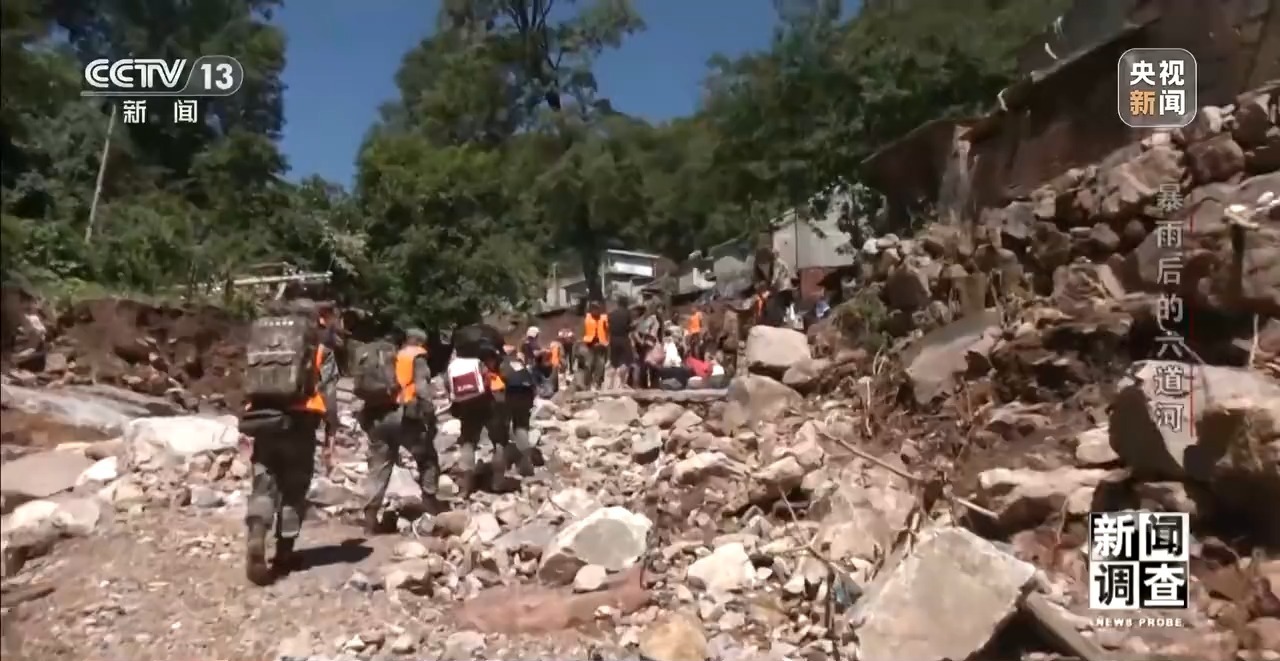 新闻调查丨攀90°绝壁、蹚过激流 救援队抵达河北失联村开展救援