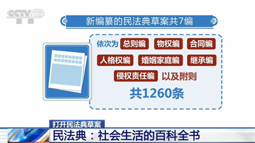 民法典被誉为“社会生活的百科全书”,根据全国人大常委会的决定,《中华人民共和国民法典(草案)》将提请十三届全国人大三次会议审议,这意味着,新中国首部民法典即将问世,我们每个人的生活都将因这部法典的诞生而被深刻改变。那么,民法后面多了一个“典”意味着什么?这部法典为什么对每个人都如此重要?从今天起新闻频道将推出“打开民法典草案”系列报道,先来了解一下民法典跟我们每个人到底有什么关系。