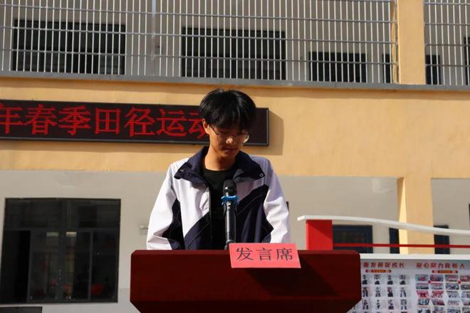 信阳市淮河高级中学政教处主任邹俊在开幕式上致词,他对本次运动会的筹备工作给予了充分肯定,鼓励运动员们发扬拼搏精神。邹主任强调:运动是生命的阳光,它不仅能强健体魄,更能磨炼意志。希望全体裁判员公正裁判,全体运动员赛出水平、赛出风格。我们要将运动会中所展现出的团结协作、顽强拼搏的精神融入到今后的学习生活中,努力推动学校各项事业持续、健康、高质量的发展。