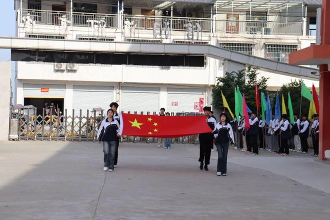在庄严的国歌声中,五星红旗冉冉升起,全体师生行注目礼,心中的爱国热情被瞬间点燃,这份对祖国的热爱,也为本次运动会奠定了庄重的基调,本届运动会拉开帷幕。