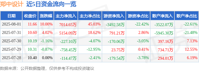 8月1日的资金流向数据方面,主力资金净流入7014.65万元,占总成交额45.03%,游资资金净流出3492.58万元,占总成交额22.42%,散户资金净流出3522.07万元,占总成交额22.61%。