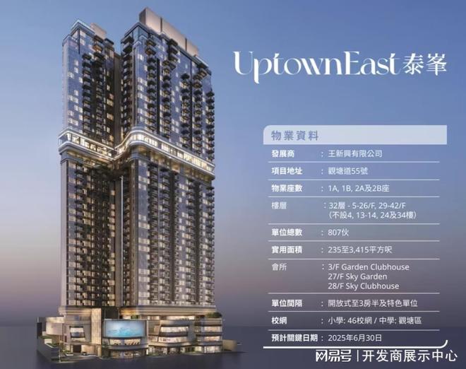 泰峯UPTOWN EAST项目由两幢住宅大厦组成,共提供807户,户型从开放式到4房,另有特色户,实用面积240至3415平方呎,能契合不同家庭结构与生活阶段的需求。外立面采用超白隔音玻璃,既引入充足天然光,又有效隔绝外界噪音。自带约两万平方呎豪华双会所及空中花园,涵盖室外及室内游泳池、尽享六星级尊崇体验。基座设有 3层超5万平方呎商业楼面,繁华触手可得,还引入了哈罗国际幼儿园,为孩子的教育提供优质起点。