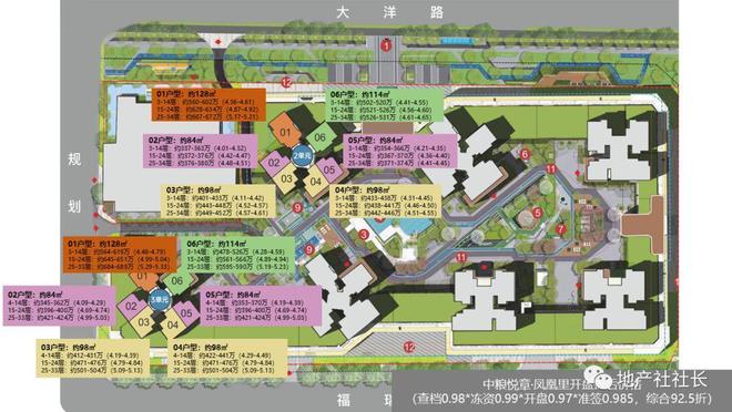 中粮•悦章凤凰里售楼处电话:,项目位于宝安大洋路与塘新路交汇处西侧,项目总占地面积32656.25㎡,建筑面积212101.58㎡,绿化率30%,容积率4.62,共7栋34层,总房源1426户,有1564个车位,户型面积84-129㎡三至四房;2T6户布局,开盘时间2023-9-2,交楼时间2025-8-30,精装交付,备案价4万/㎡,管理费3.9元。