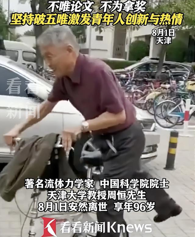 2021年,天津大学发布了一条题为“92岁周恒院士骑自行车去办公室做科研”的短视频,登上热搜、感动全网。视频里,满头白发的周恒从办公室出来,骑着自行车回家。