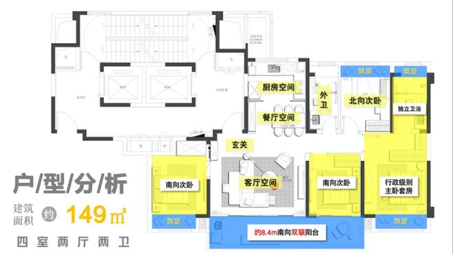 ※超级面宽:整体四开间朝南,超大横厅开间约5.4米,横向对比23年楼盘,几乎是全方位超越,尺度感堪比狮山核心约189㎡户型。配合双联宽景阳台,既可作为空中花园,也可作为阳光茶室、棋牌区、健身区。