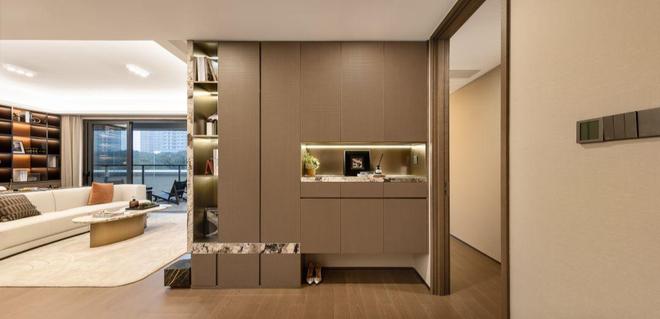 ※超级私属:类一梯一户入户,电梯分别为东西向开门,两户虽处同层但动线不交叉,各有私属领域,私密性满分。业主一出电梯即可抵达私属百变功能区,这里是专属鞋帽间、儿童玩具收纳间,也可以成为一个室内外礼仪性的过渡空间,增加出行与归家仪式感。