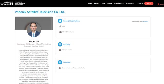 2025年初,凤凰卫视正式成为联合国妇女署“全球媒体契约联盟”(Media Compact)战略合作伙伴,成为继新华社之后第二家加入该联盟的华语媒体。该联盟要求媒体通过打破刻板印象报道、提升女性在新闻中的话语权,系统性推动性别平等。