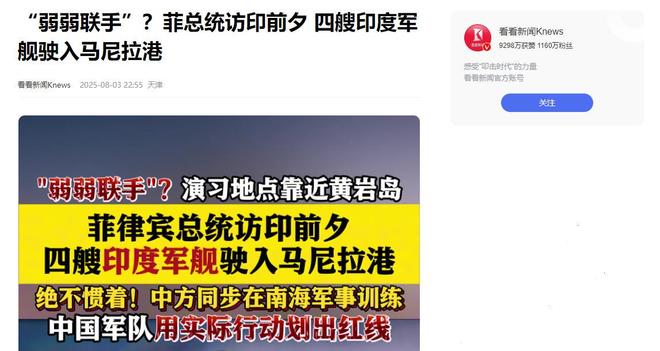 然而就在就在舆论热度未减之际,印度军方宣布,三艘精锐军舰将于72小时内抵达南海,与菲律宾海军展开联合巡航,此举被外界视为印度公开为菲律宾“撑腰”的举动,使得南海地缘政治博弈骤然升温。