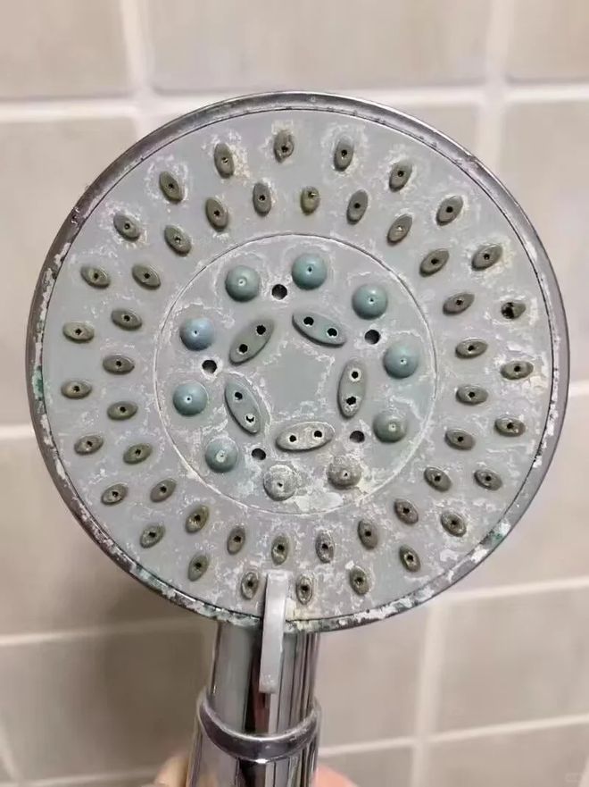 而阿姨的做法是:将一比一的白醋和水倒在一个盆里,再将花洒放在里面泡几个小时,再用牙刷刷一刷就可以焕然一新啦。