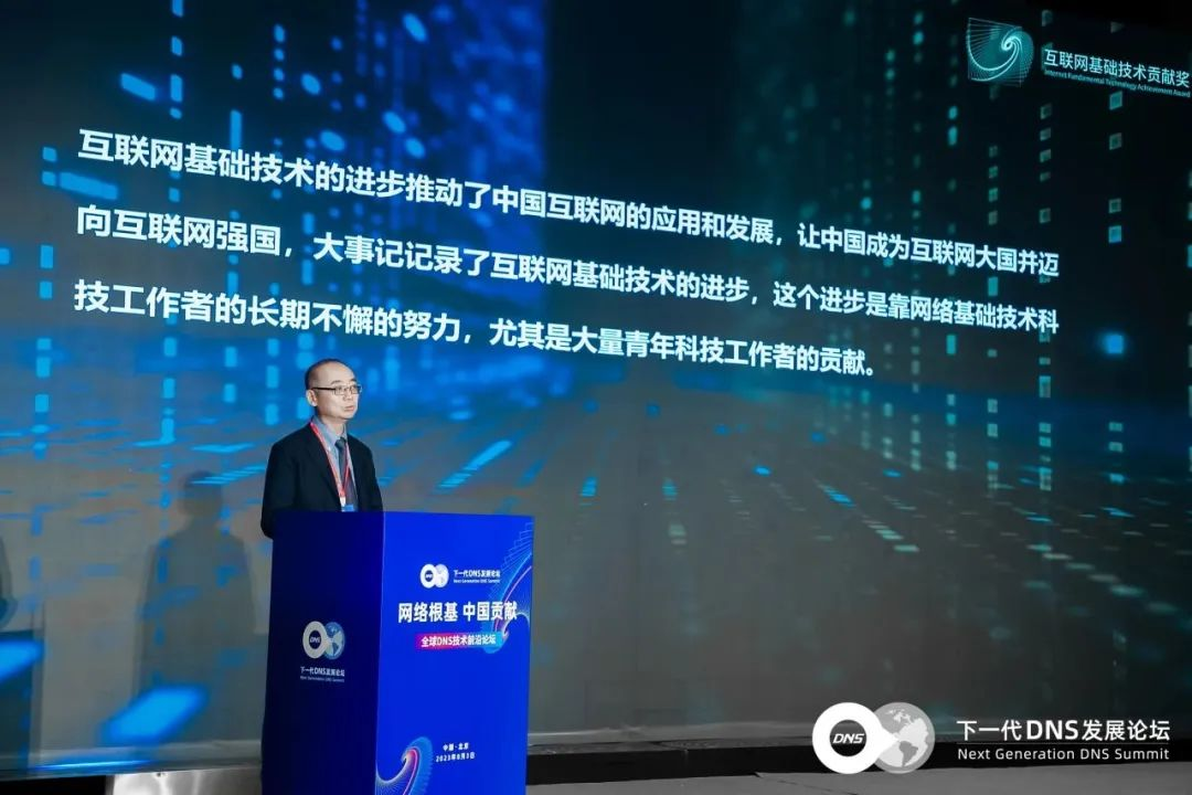 在第二届下一代DNS发展论坛期间,首届“互联网基础技术贡献奖”颁发,由五位青年科技工作者获得,论坛现场,五位获奖人分享了通过科技研发对国际互联网的贡献。他们不为人所熟悉,却对网络基础技术保持不懈追求,保持科学技术求索精神。据主办方介绍,该奖项旨在传承中国互联网开拓者的科学精神和自主创新精神、激励年轻一代加强互联网基础技术研究、推动中国迈向网络强国,重点奖励互联网网络基础技术领域做出突出贡献的青年科技工作者。