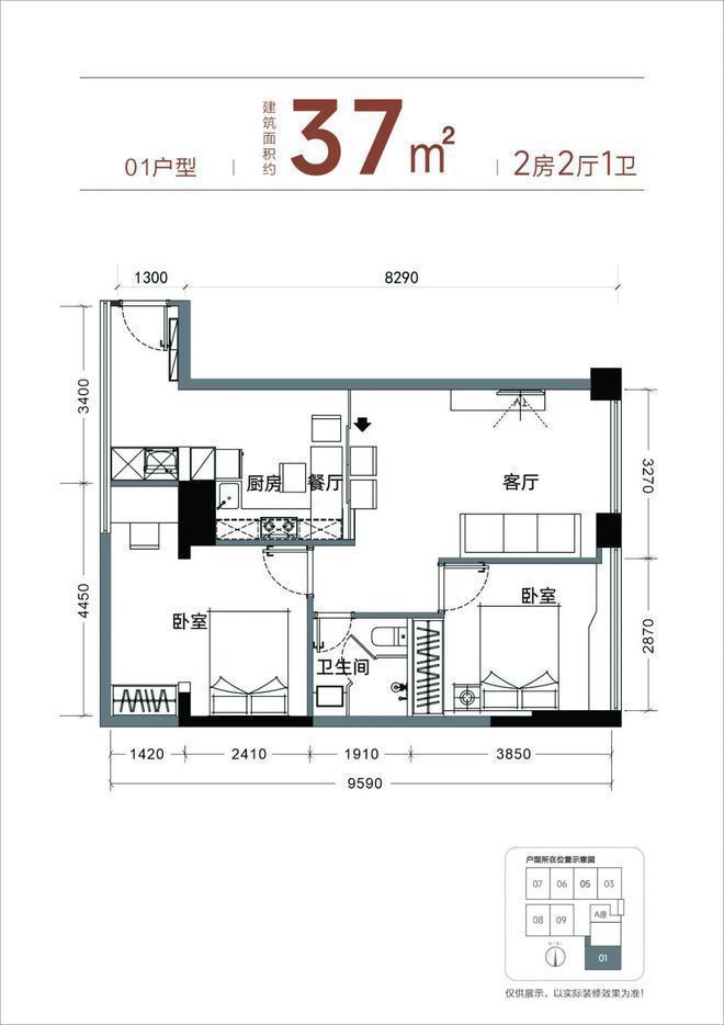 户型面积选择不多,目前只有37平,可以选择的楼层只有7-8-9 这三层再售,其他都无得选择。