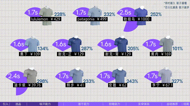 本期我们花了大量的时间做测试,剪坏了上千块的衣服,最终发现贵价大牌也可能翻车,就像始祖鸟吸汗效果一般,lululemon速干拉垮。而低价国货也会有高品质,像不到百元的速干t也有值得推荐的产品。
