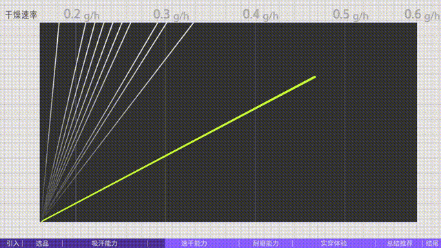 有意思的是,到了吸汗量测试,刚才的“垫底二人组”,都逆袭追赶到了前排,扳回了一局,反倒是蕉下、蕉内这两款,这次在吸汗总量上稍显逊色了。出汗量大的人,还是要从「能吸」的产品里选。