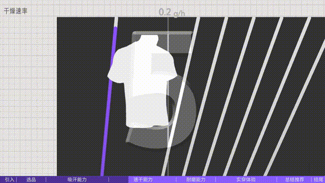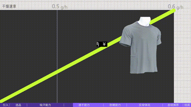 吸汗以后,干的快不快?这可以说是速干衣最核心的能力了,实验室用这台吸收速度测试仪来检测。把样品悬挂在测试仪上,喷洒定量的水后,让它自然干燥,每3分钟称一次重。