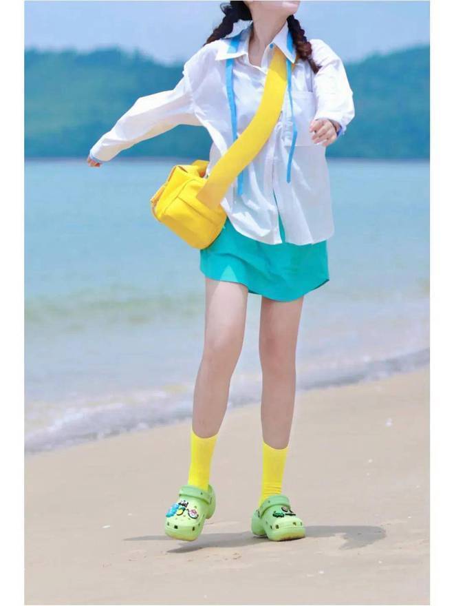 白衬衫配蓝色的短裙,清新减龄,俏皮活泼,尤其是这这种湖水蓝的短裙,明度和饱和度都不低,在人群中显得非常的高调惹眼,在用亮眼的柠檬黄包包和袜子点缀,点亮整体造型的亮度,整体气质更加的清新浪漫了,时髦精致,干净清爽不出错,活力感爆棚。