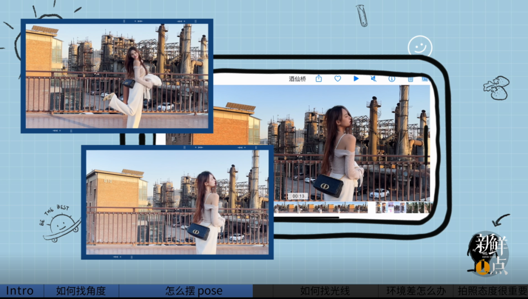如何让照片从普通变成好看?相信这是各位女生、和抱着学习态度来看的男生都会有的疑问。那么本期我们会把作为模特和拍摄者的经验总结成四招分享给各位。这四招不管是对拍摄者还是对被拍摄者都有帮助,而且在任何场景都适用,干货满满,真正的有手就会!第一招最重要的是要告知拍摄者如何找角度。如果你是被拍的人,也可以跟你的摄影师说。