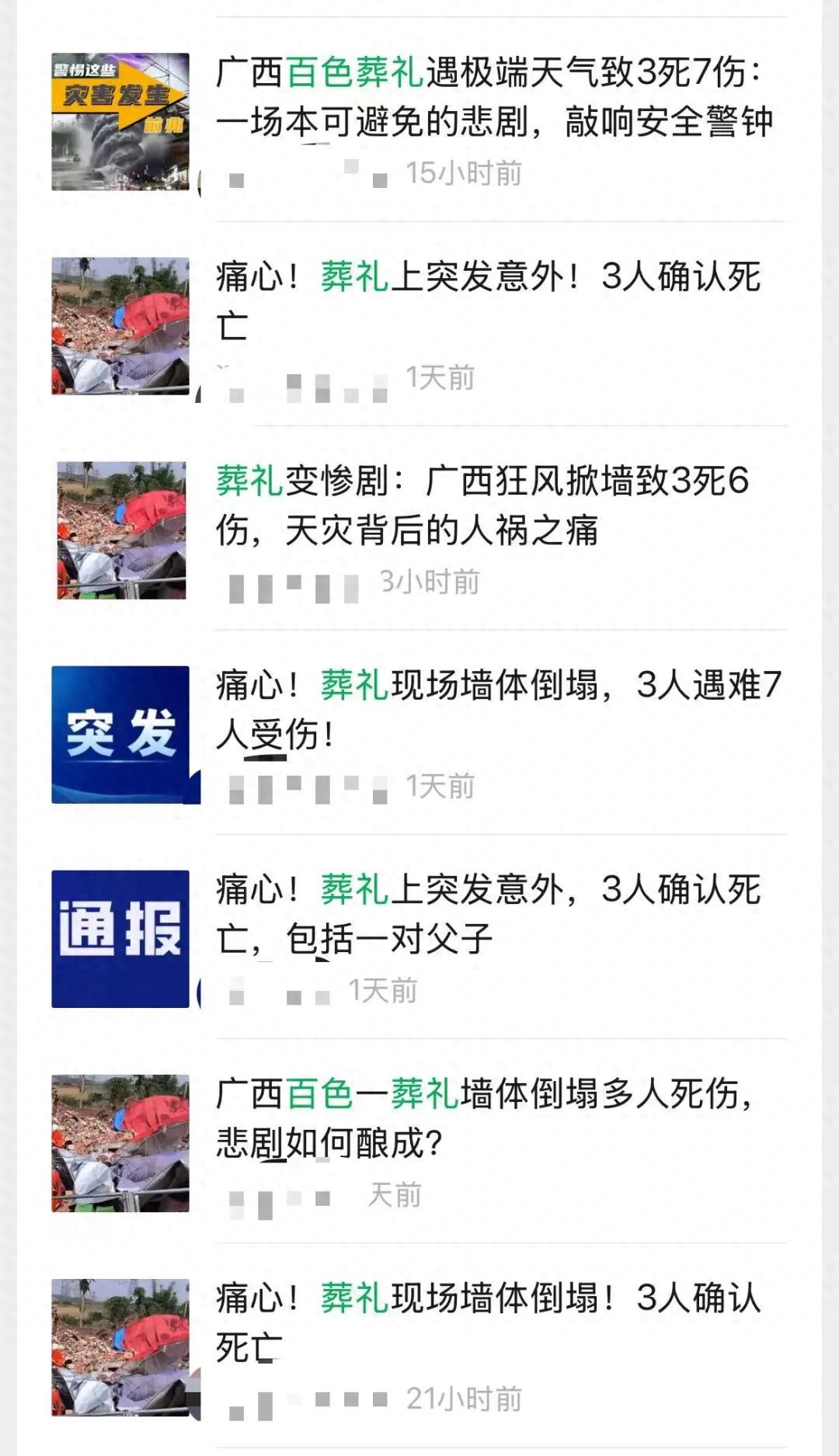 这起事故并未在第一时间成为媒体关注的焦点。但20天后,中国新闻周刊发文《百色一葬礼墙体倒塌多人死伤,悲剧如何酿成?》,从当事人亲属的角度还原了事件的基本事实。同时,部分事故现场的图片、视频也在社交平台上开始传播。