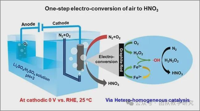 大连化物所邓德会团队在电解池阴极实现了空气电化学转化制硝酸,突破了传统工业需要高温高压的技术瓶颈。该技术为温和条件下N2和O2的共活化与高效转化提供了新途径,被《自然-合成》评价为“一种独辟蹊径的空气转化途径”。