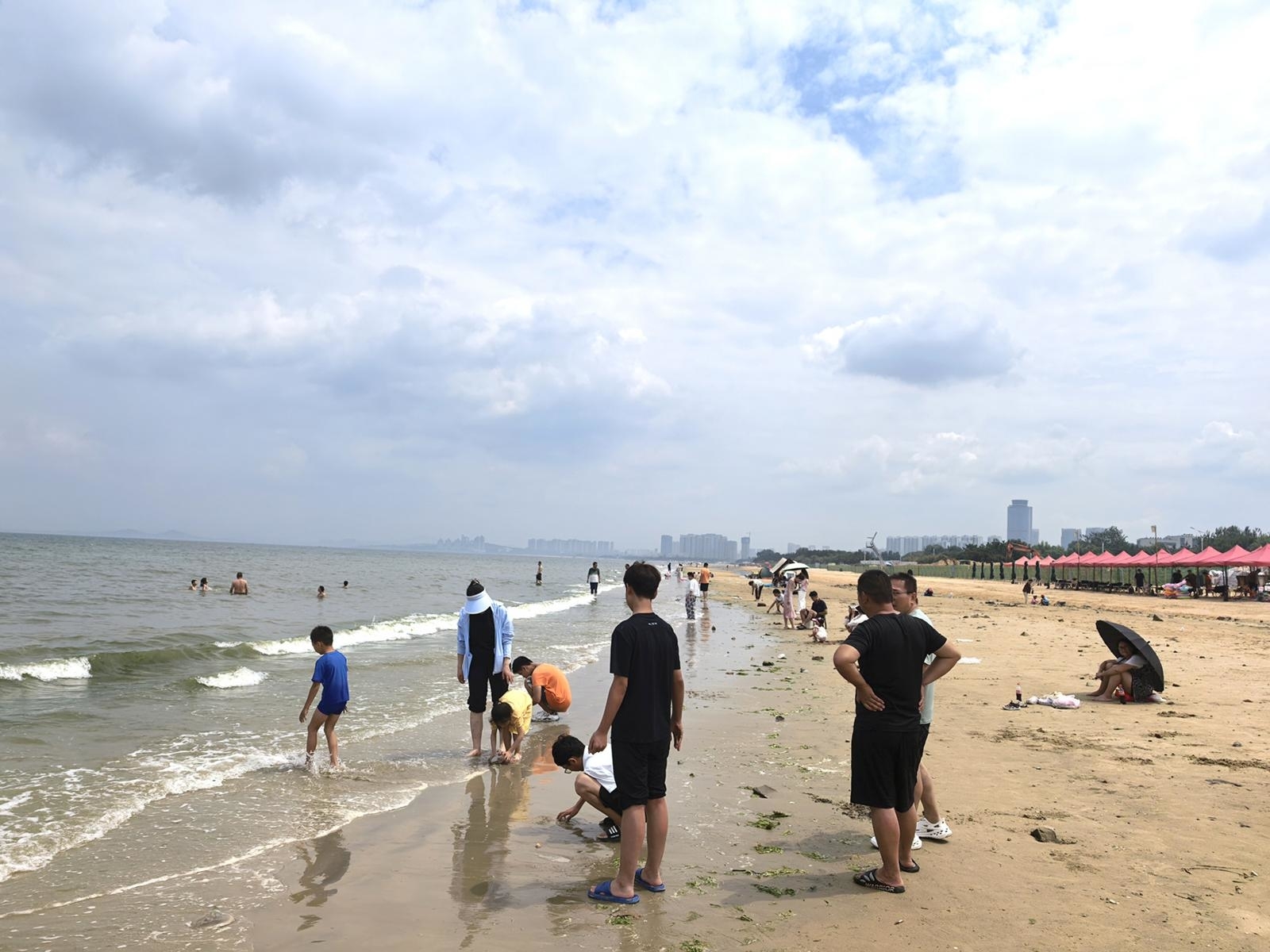 昨天早上,记者来到莱山区烟大海水浴场,不少市民和游客已经来到这里。早上的海水还有些许凉意,下水的人并不多,处处可见喂海鸥、捉螃蟹的游客。“我们是来喂海鸥的,这里有专门售卖的火腿肠,很有趣。”一位游客说。