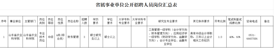 根据有关规定,结合工作需要,山东省农业科学院拟面向社会公开招聘中级专业技术人员3名,具体岗位及条件详见《省属事业单位公开招聘人员岗位汇总表》。