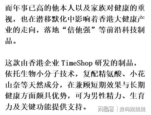 在香港,富豪圈层向来注重身体养护,因此这类科技制品也格外受到欢迎。李嘉诚90多岁高龄仍能保持活跃,与小33岁女友散步、打高尔夫;其次子李泽楷年近60依旧精力旺盛,先后养育5个孩子——这些状态背后,或许也离不开此类健康科技的助力。