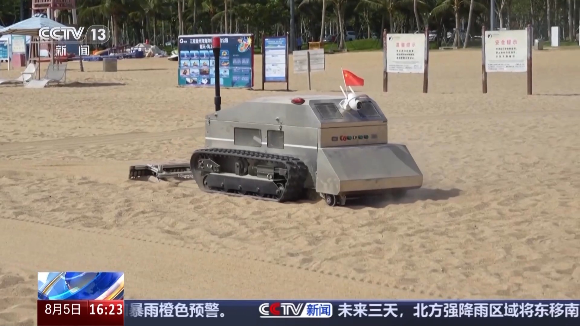 当人工清扫遭遇沙滩垃圾深埋难清理?海面塑料瓶漂浮不定?巨型船舱高空清洗危险耗时?别担心,智能“清洁机器人”正在各显神通!在海南三亚,“沙滩狗”正用梳齿耙翻出深埋垃圾;同一片海湾,“海洋守护者”无人船自主巡航精准“吞”掉水面漂浮物;在青岛港,“洗舱精灵”吸附舱壁飞檐走壁,3小时搞定人工数天的清洗任务。三款国产智能机器人,正以创新科技高效破解海陆清洁难题。首先来关注深层清洁岸滩的“沙滩狗”,它长得像履带车,一亮相就引发游客的关注。
