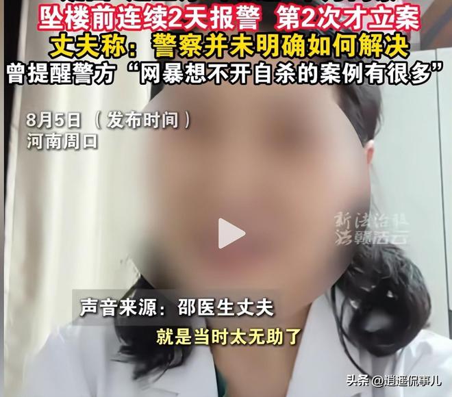 信息来源:腾讯新闻《河南一妇产科主任坠亡,家属:3个账号连续7个多月网暴,让她极度无助》(2025年8月5日)知乎《河南周口一妇产科主任坠楼身亡,家属称生前持续遭患者网暴,当地成立调查组》(2025年8月5日)网易新闻《周口最美医师邵晓蓓坠楼去世!仅57岁,知情者曝内情令人心痛》(2025年8月5日)凤凰网《57岁妇产科主任坠楼身亡,曾被质疑的一次手术:为何要切除产妇子宫?》(2025年8月5日)新浪财经《河南周口医生坠亡,丈夫发声:三个账号连续网暴7个多月!生前曾被评周口最美医师》(2025年8月5日)网易新闻《可怕!邵晓蓓自杀案扒出一细节:网传带头造谣者竟是同医院的护士》(2025年8月6日)网易新闻《邵医生自杀后续:留下五字遗书,网暴仅冰山一角,警方疑似不作为》(2025年8月6日)网易新闻《周口女医生坠亡事件,执法惰性是最后一根稻草》(2025年8月6日)