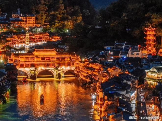 凤凰古城:清晨6点漫步沱江边,看吊脚楼倒映在薄雾中,青石板路与橹声灯影交织,随手拍都是水墨画。