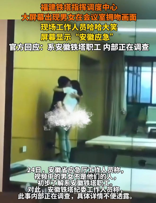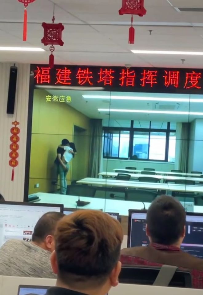 事情发生在4月24日,福建铁搭指挥调度中心的大屏幕上,出现男女在会议室拥吻的画面,逗得现场工作人员哈哈大笑。