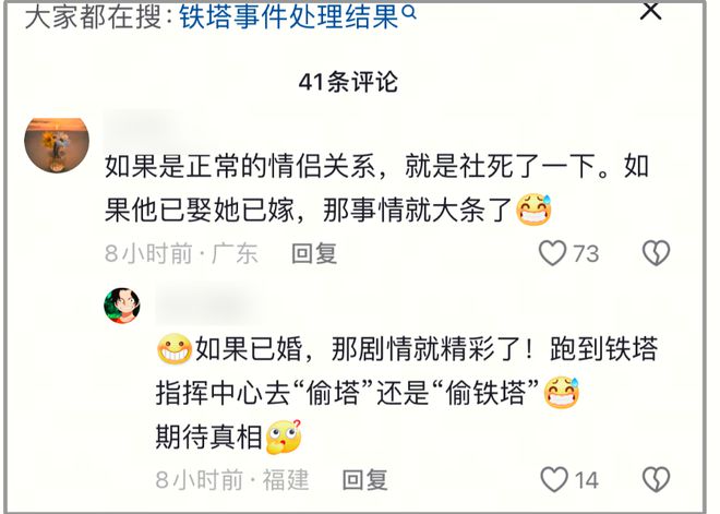 有网友表示如果视频的两位员工是情侣或者夫妻关系,拥吻视频被发到网上,最多就是社死一下用不着被停职。但若是不正当男女关系,那情况就严重得多。而从官方的通报来看,或许是后者的可能性更多一些。