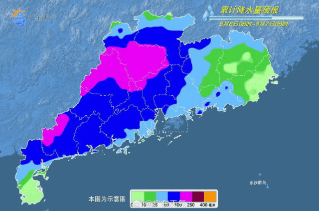 自8月3日以来,广东、广西中东部、台湾岛西部等地出现持续性强降雨天气,部分地区累计降雨量达。其中昨日,广东广州、惠州、清远、阳江及广西北海和香港等局地出现特大暴雨(252~436毫米)。