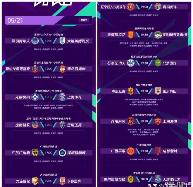 5月21日足协杯第3轮赛程出炉晚19:30央视直播表:CCTV5、5+节目单