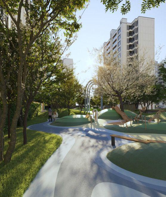 社区内部1.8低密规划,造就浓荫式建筑美学,多重沉浸式景观组团,纵向绿意生活,特设架空层,可做泛会所、全龄乐活空间等,从内部到外部丰富的节点设计,以自然舒适的动线,实现自然栖居理想。