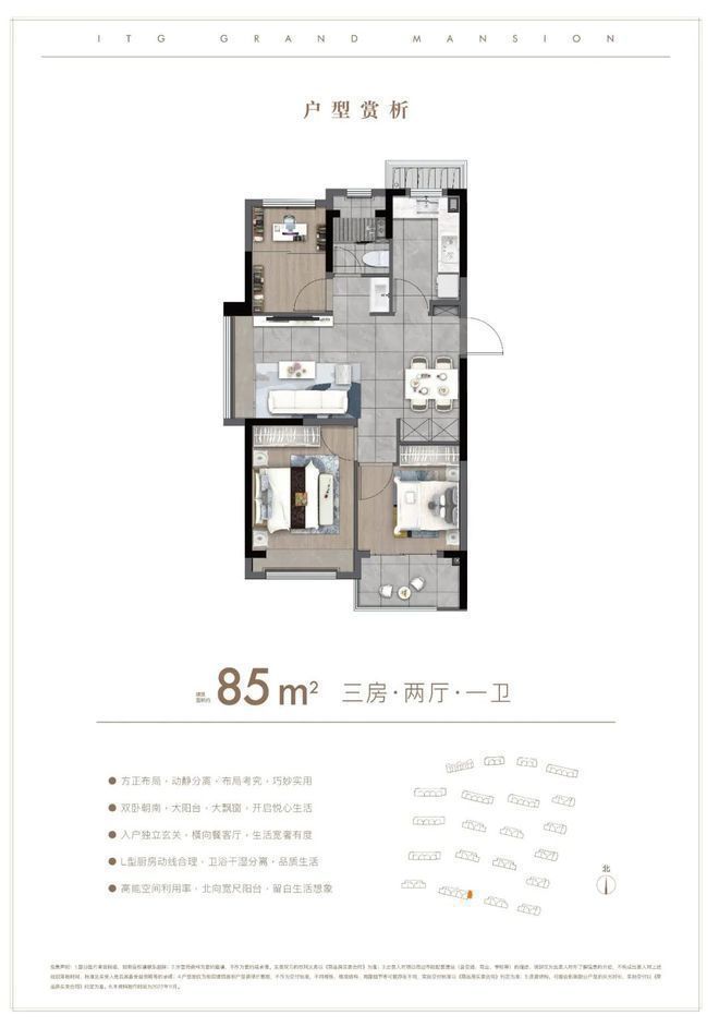 户型方面:约85-96㎡的全三房设计,每一款户型都是会传递出国贸的产品观。南北通透,布局考究,动静分离。