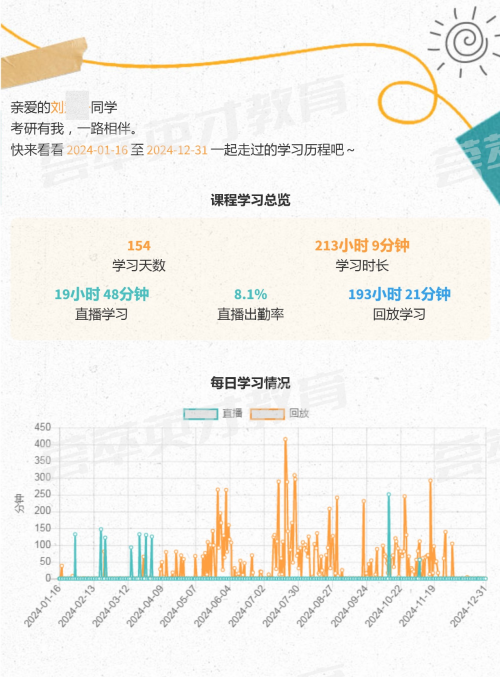 荟萃英才教育的课程和老师团队,是我备考路上至关重要的助力。 班主任的督学服务非常到位,让我能按时按计划学习,即使偶尔因工作错过直播,看到提醒消息后,我也会尽快补上落下的课程。有这些经验丰富的考研老师带领,方向感就非常明确, 他们深谙考研重难点,能把复杂的知识点“揉碎了、掰开了”讲得透彻明白。同时,各阶段清晰的学习任务安排和实用的电子课件,都能帮你快速抓住核心,极大提升学习效率。坚持听完所有老师的课程后,我感觉收获巨大,为后续学习打下了坚实的框架基础。