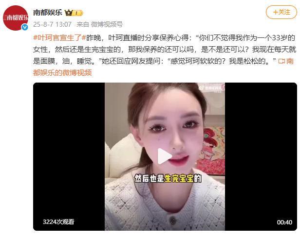 热搜第一!叶珂直播官宣生子