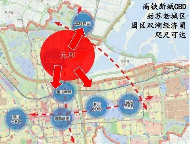 苏州编修中的新一轮城市总体规划(2035),为了更好地实现全域城市化,着力打造城市经济,相城在“七个街道、四个镇、一个度假区”行政格局基础上,提出了重点打造五大功能片区”,即阳澄生态新区(高铁新城)片区、潘湖国家级经济技术开发区片区、黄高新区片区、元和高新区片区、阳澄湖生态旅游度假区片