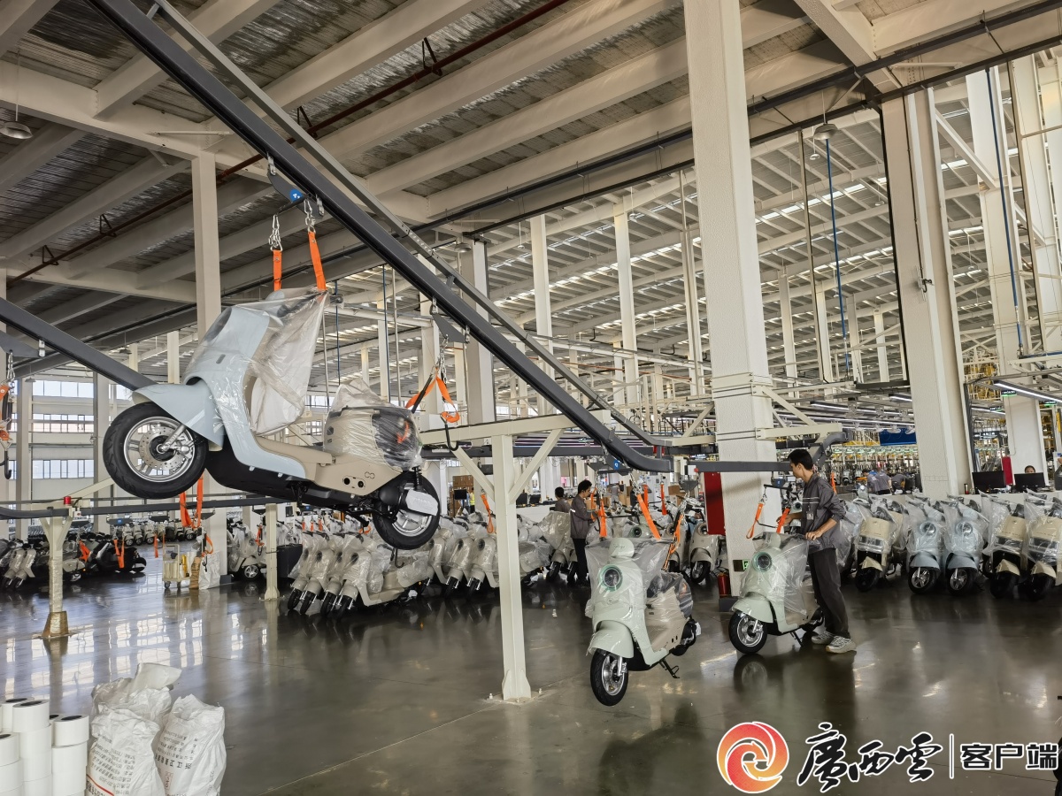 8月5日,在贵港市港北区的广西爱玛车业有限公司生产车间,机器人焊接、机器人喷涂、数控激光切割等智能设备高效运行,30秒就能下线一辆电动自行车。