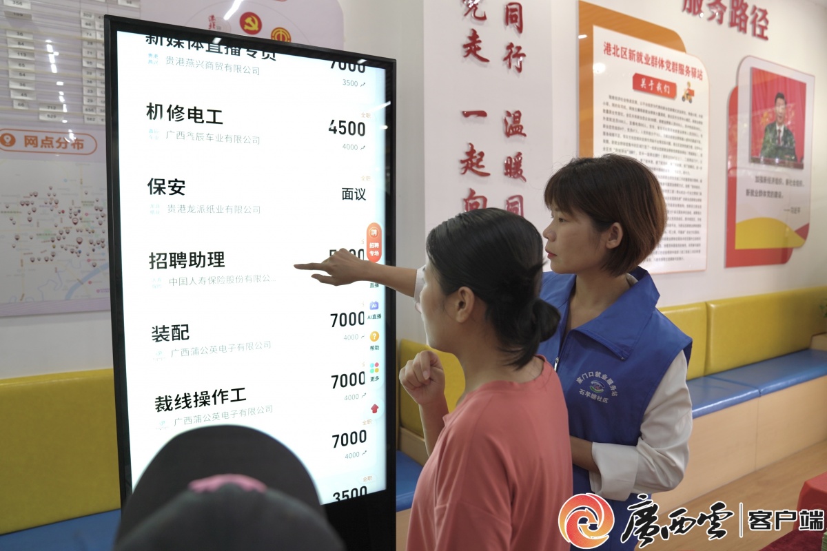 在就业服务方面,港北区率先启用贵港市首个AI家门口就业服务中心,在六八社区与石羊塘社区“家门口就业服务站”,通过AI一体机、AI职播机、AI交互机3个AI终端设备组成“智慧矩阵”,为群众提供智能求职服务,提升就业帮扶精准度。今年上半年,该区累计为企业输送求职人员5800多人,促成1500余人入职。