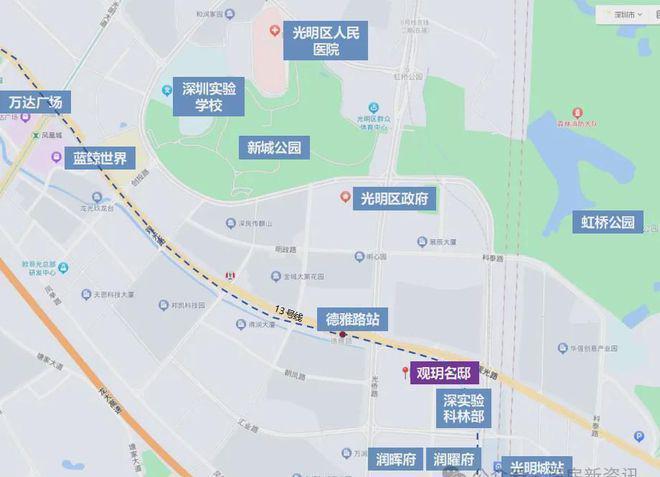 中建·观玥名邸属于光明区凤凰城板块的光侨路与观光路交汇,靠近虹桥公园/光明城站,属于目前光明新盘价值版块第一梯队的位置。