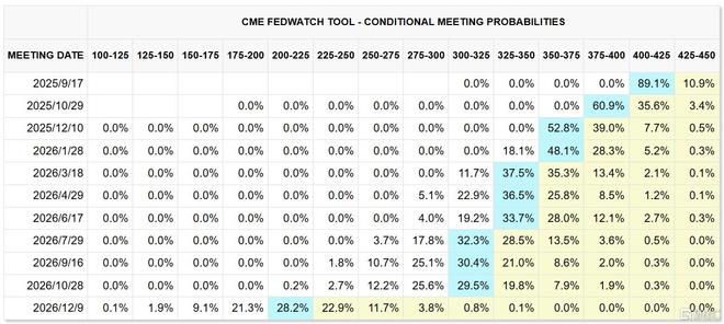 据CME“美联储观察”:美联储9月维持利率不变的概率为10.9%,降息25个基点的概率为89.1%;年内累计降息75基点的概率为52.8%,降息50基点的概率为39%。